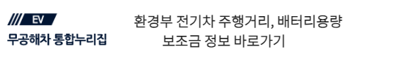환경부 차량별 주행가능 거리 및 배터리 용량 바로가기