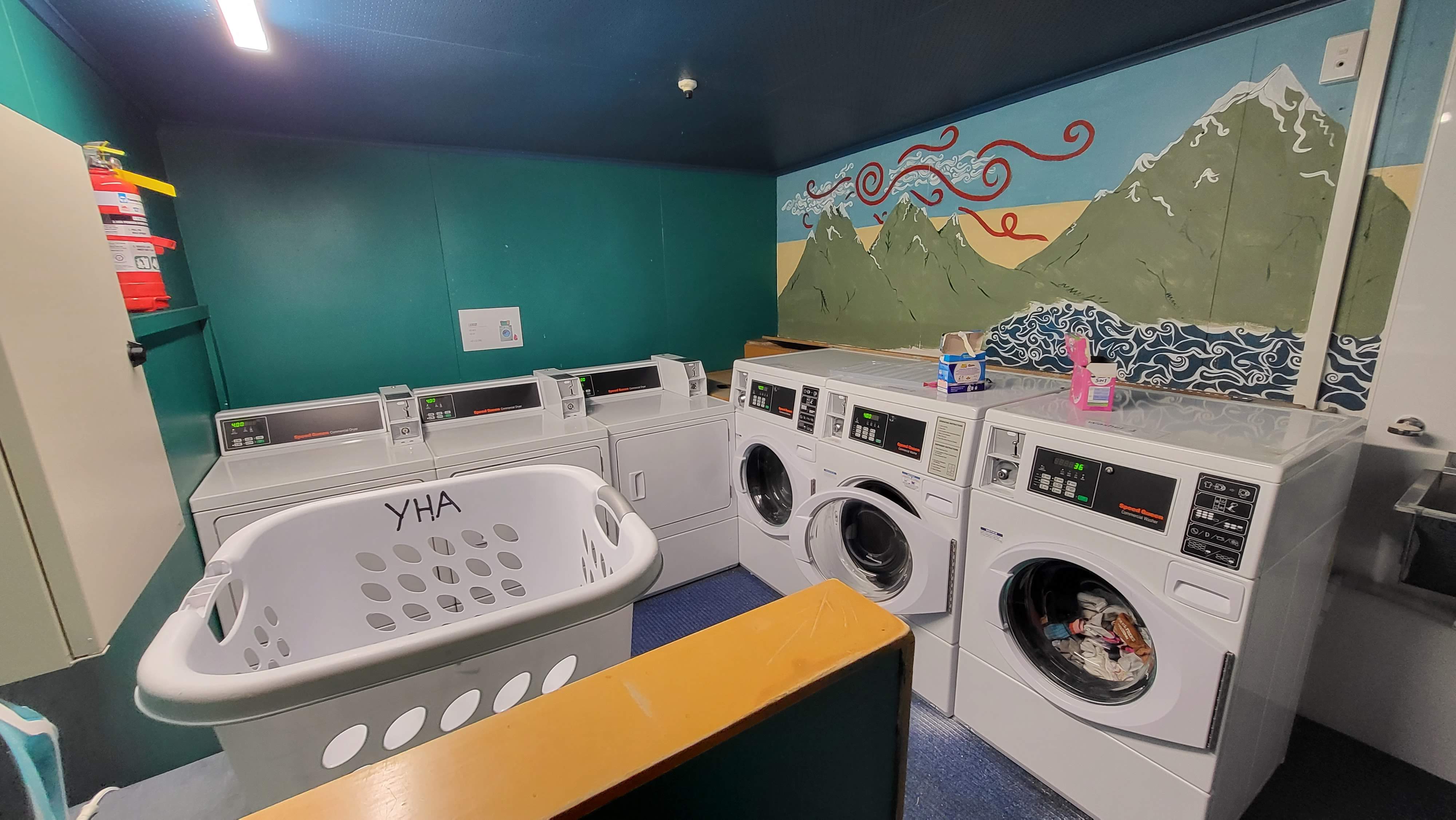 세탁실은 체크인하는 곳 옆 복도를 따라 건물 뒤로 가면 위치하고 있으며 세탁 2불, 건조 2불입니다. 세제는 구비되어 있었습니다.