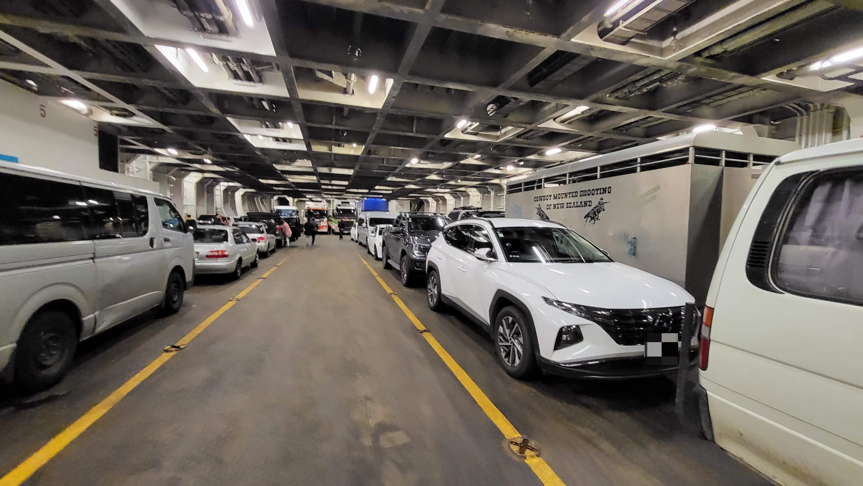 시간이 되면 Lane 별로 차량을 배로 이동할 수 있도록 안내를 해주고 별 어려움 없이 주차할 수 있었고 주차가 완료되면 캐빈으로 가져갈 짐을 조금 챙겨 올라가면 됩니다. 배가 출발하면 다시 차로 돌아갈 수 없으므로 필요한 짐은 꼭 챙겨서 올라가야합니다.