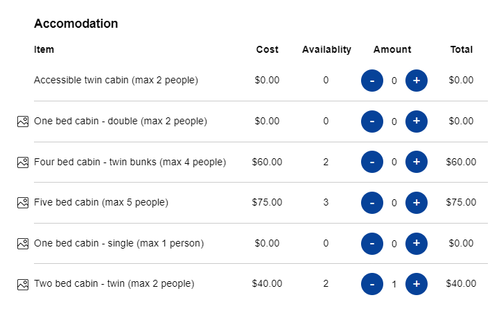 별도로 차량과 Two bed cabin을 추가하였습니다.