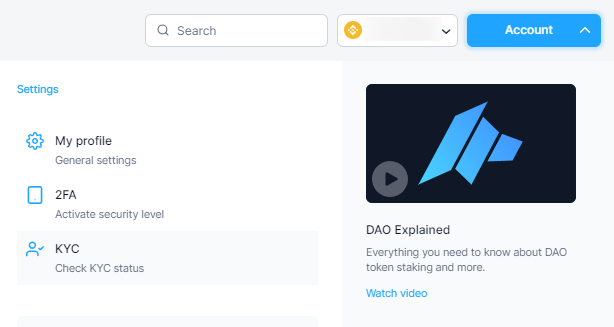 10) 완료가 되고 나면 홈페이지 메뉴 Account -> KYC를 클릭합니다.
