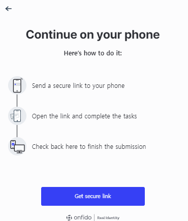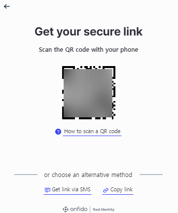 8) "Get Secure link"를 누르면 QR 코드를 생성해 주고 이 QR을 스마트폰으로 찍으면 KYC 사이트로 연결해 줍니다.
