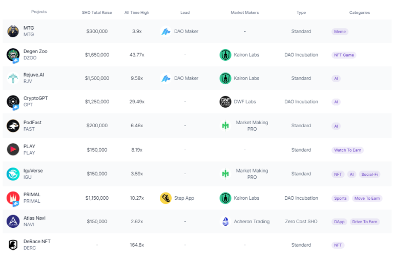 최근에 진행한 IDO 수익률을 보면 Degen Zoo (43배), CryptoGPT (29배) 등은 TGE에 ROI를 넘는 금액의 수익률을