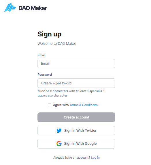 준비되었다면 https://daomaker.com/register 링크를 클릭합니다.