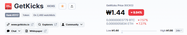 하지만 항상 성공적인 IDO만 있는 건 아닙니다. M2E 였던 GetKicks 코인의 IDO 케이스를 보면 홈페이지 기준 ATH는