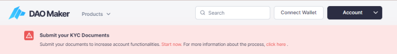 3) Dao Maker 사이트로 가서 로그인을 하면 아래와 같은 KYC 요청 문구를 확인할 수 있습니다.