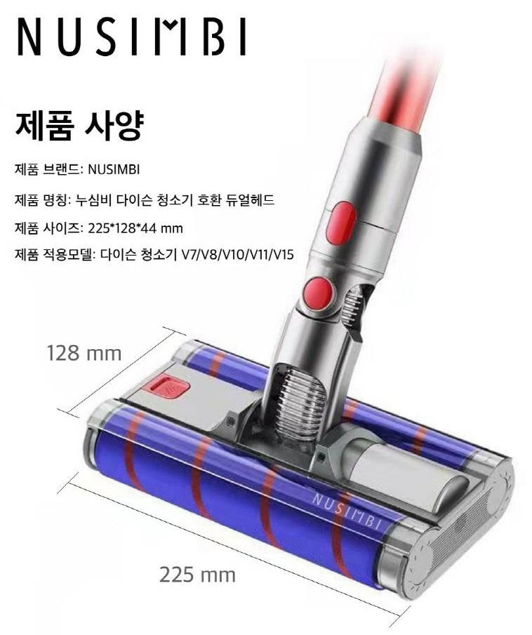 누심비 다이슨 청소기 V7 V8 V10 V11 V15 호환 듀얼 헤드 교체 부품