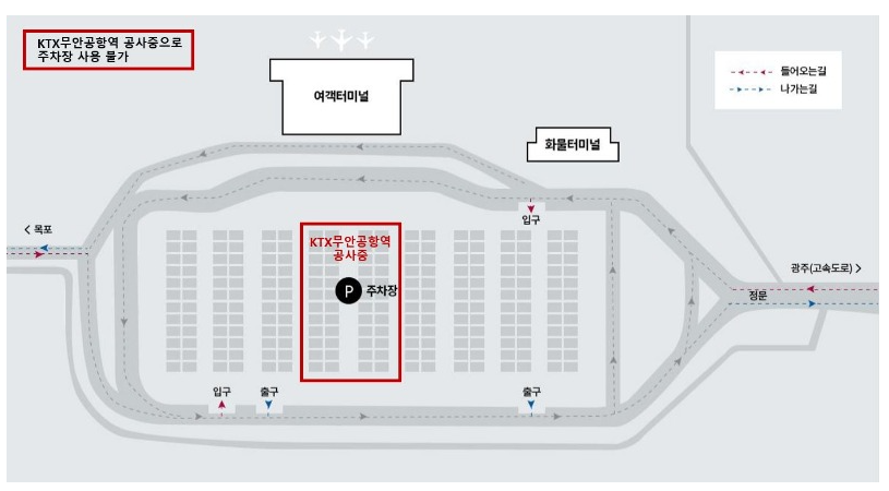※ KTX 무안공항역 공사로 붉은 박스 안에는 주차가 불가함