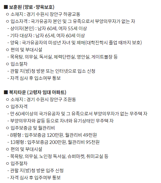 기존 국가 유공자의 양로 관련 시설정보입니다.