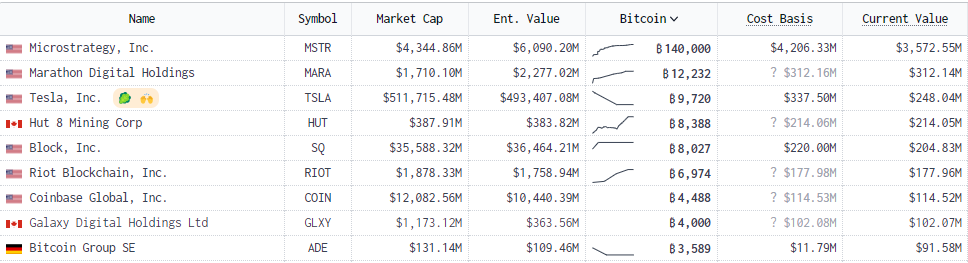 아래는 대표적인 미국 비트코인 관련주입니다.