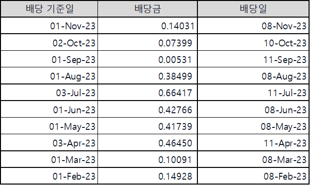| 배당금 | 0.140305 (10월 : $0.07399) |