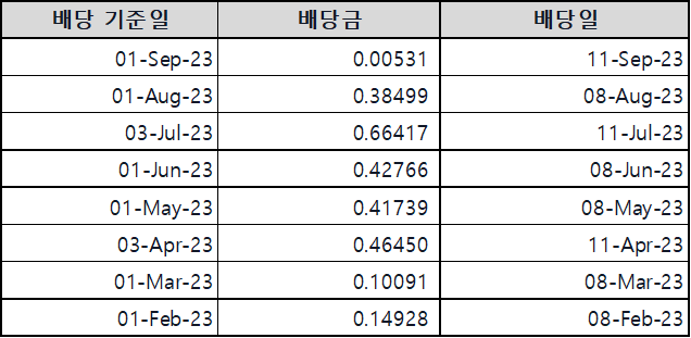 | 배당금 | $0.00531 (8월 : $0.38) |