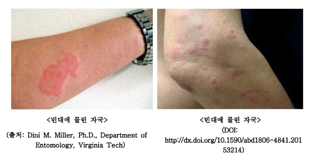 물린 경우 따뜻한 물로 찜질해 주면 좋습니다. 긁어서 생긴 상처에는 연고를 발라 세균 감염에 대비해야 합니다.