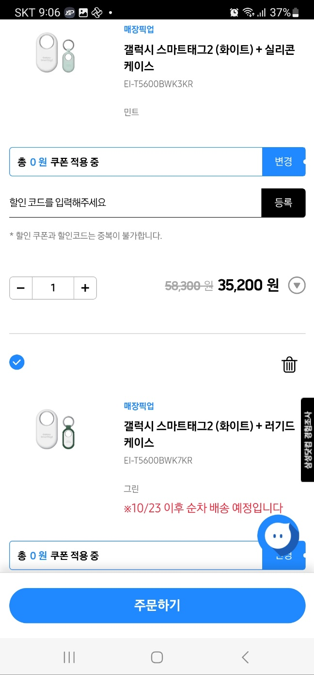 이벤트 : 스마트태그2 런칭 기념으로 23년 10월 18일 - 10월 31일까지 실리콘 케이스 혹은 러기드 케이스 무상 증정중입니다.