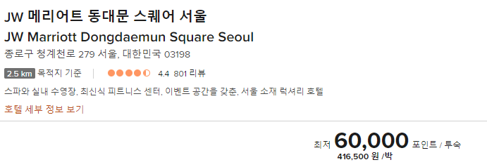 5만 포인트까지 예약 가능하므로 JW 메리어트, 조선 팰리스 안됩니다.
