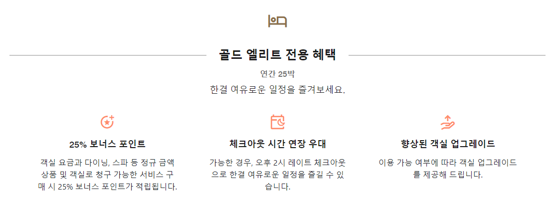 골드 엘리트 등급에서 주는 혜택은 아래와 같습니다.