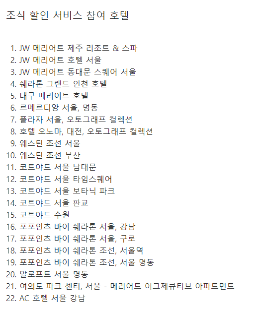 **** 23년 9월 30일까지 "메리어트 본보이 최대 2박 호캉스" 행사 중입니다. (+1박 추가로 총 2박 숙박권 제공)