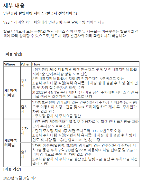 인천 공항 발레파킹 서비스도 이용가능합니다.