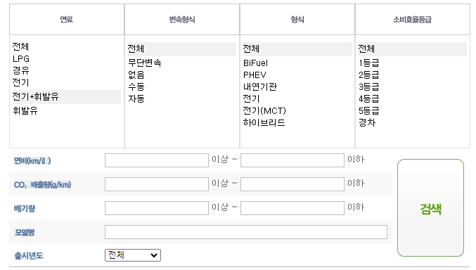 나의 차량의 연비는 어떻게 되는지 검색하는 방법도 알려드리겠습니다. (하이브리드 차량을 포함)