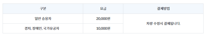 경차, 국가 유공자 및 장애인 차량은 50% 할인됩니다, 이용 요금을 결제했다면 차량키를 수령하여 주차된 곳으로 이동하시면 됩니다.