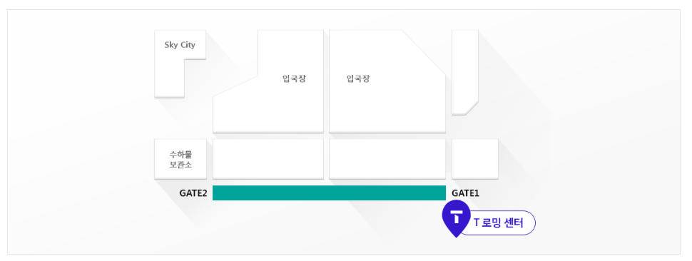 1층 1번 Gate옆 (06:00-22:00) : Baro Box 임대, 반납 / 로밍 폰 임대, 반납 / 자동로밍