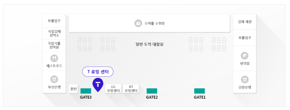 1) 김해공항 3층 (06:00-21:30) : Baro Box 임대 / 로밍 폰 임대 / 자동로밍