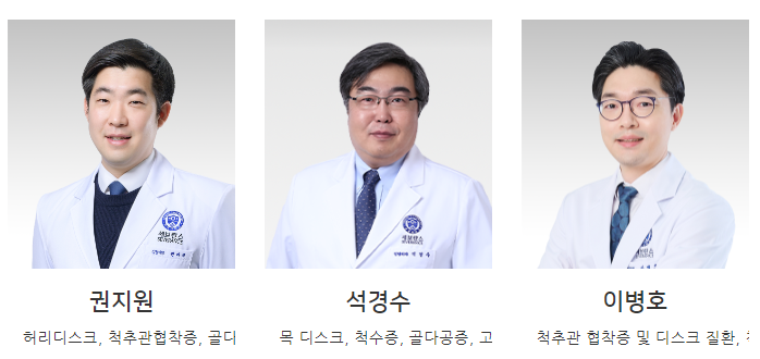 | 석경수 | 목 디스크, 척수증, 골다공증, 고난이도 경추질환, 후종인대골화증 | 바로가기 | |