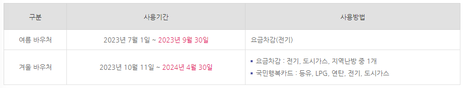 에너지 취약 계층을 위해 에너지 바우처를 지급하여 전기, 도시가스, 지역난방, 등유 등을 구입할 수 있도록