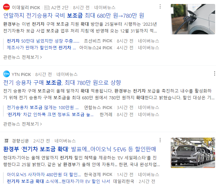 보조금 확대 기사가 쏟아지고 있는데 내용자체는 최대 100만원을 깎아주겠다인데.