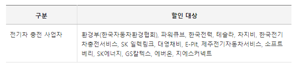 | 전기차 충전요금 할인 | 50, 70% 할인 결제일 할인 |