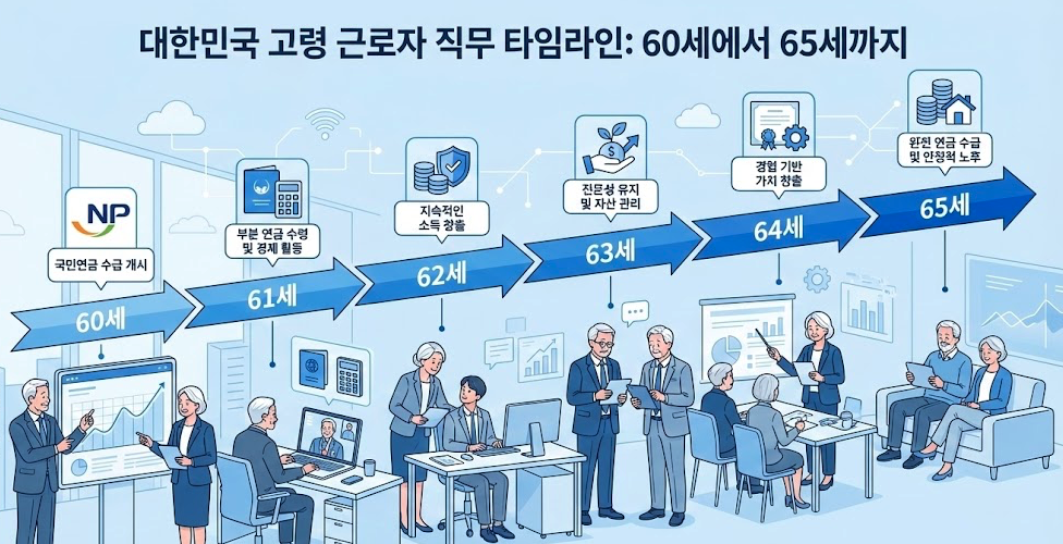 "60세에 퇴직하면 연금 받을 때까지 뭘로 버티지?" 요즘 직장인이라면 한 번쯤 이런 고민을 해보셨을 겁니다. 현재 법정 정년은 만 60세인데, 국민연금 수급 개시 연령은 점점 늦춰져 1969년생 이후부터는 만 65세가 되어야 연금을 받을 수 있습니다. 최대 5년의 '소득 절벽'이 발생하는 셈이죠. 이 글에서는 정년 65세 연장의 핵심 내용, 단계별 시행 로드맵, 출생년도별 적용 여부, 그리고 지금 당장 준비해야 할 것들까지 빠짐없이 정리해 드리겠습니다.
