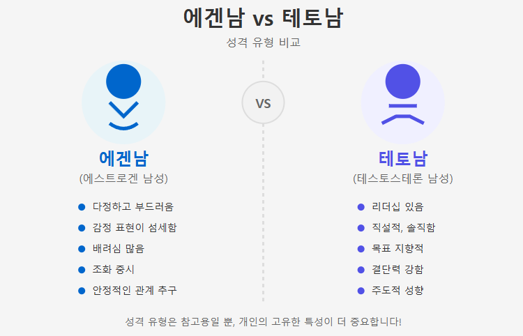 에겐-테토 이론에 따르면, 각 유형은 특정한 연애 패턴과 궁합을 가지고 있습니다. 상대방의 유형을 알면 관계를 더 잘 이해하고 발전시킬 수 있어요!