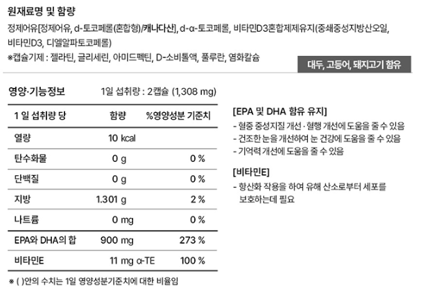 - EPA·DHA 함량이 풍부하여 혈행 및 두뇌 건강에 도움