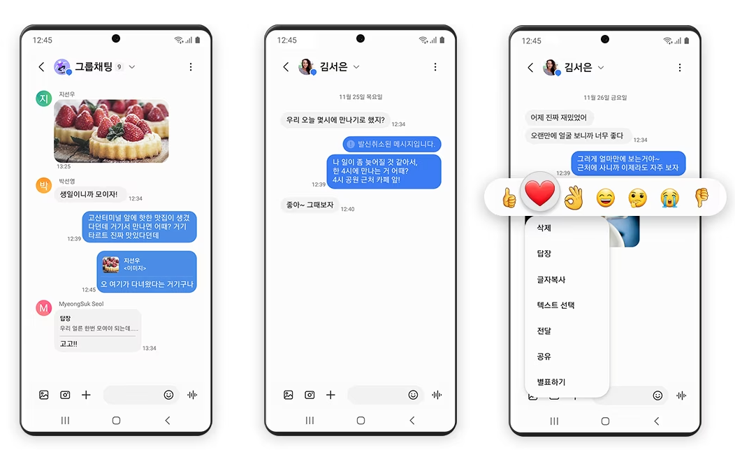GSMA에서 정의한 국제 표준 메시지 규격 RCS (Rich Communication Suite)를 단말에 구현하여 기존의 문자 메시지 (SMS) / 멀티미디어 메시지 (MMS) 대비 다양한 기능을 제공하는 서비스입니다. 대부분의 삼성 갤럭시 폰의 메시지앱에