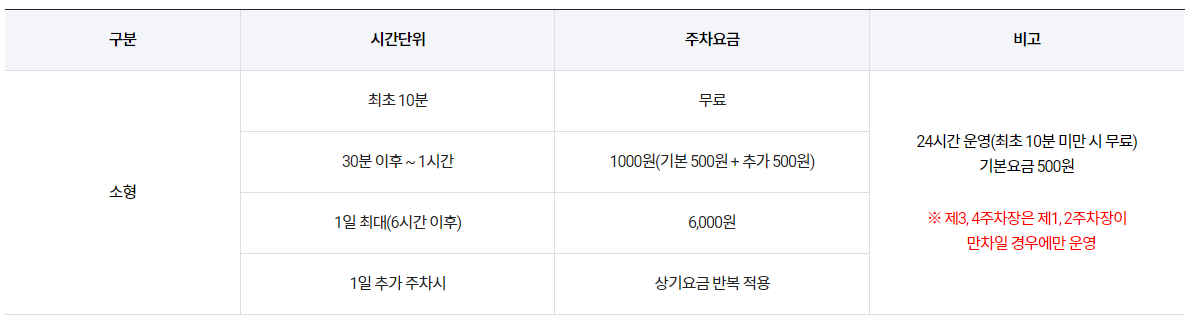 - 소형: 최초 10분 무료, 30분 이후 1,000원/30분, 1일 최대 6,000원