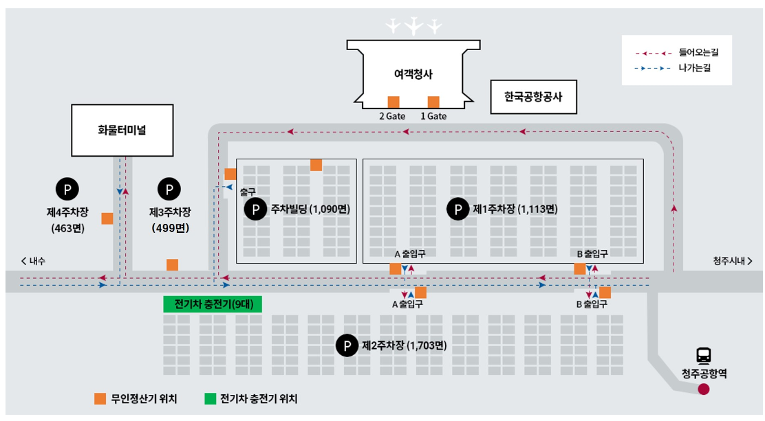 청주공항 이용고객들을 위한 주차장 정보입니다.