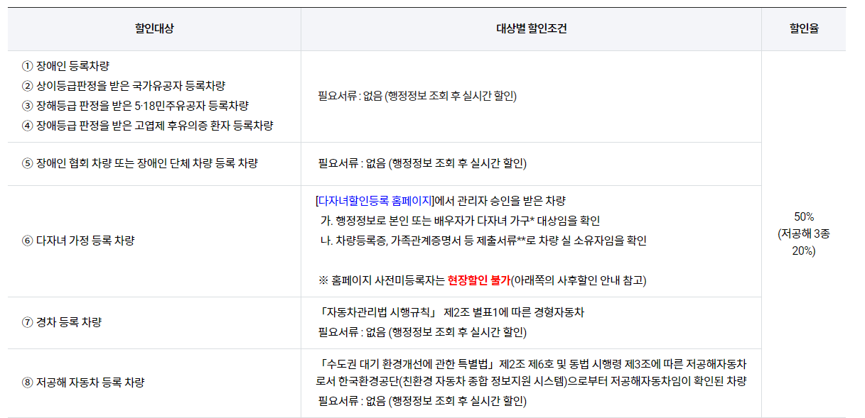- 필요서류 미비로 할인 못 받으면 30일 이내에 신청 가능