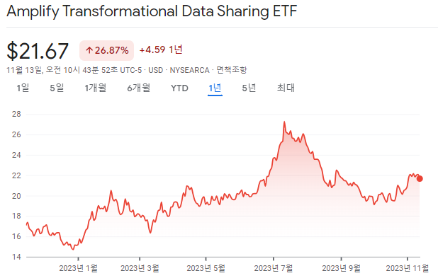 Amplify Transformational Data Sharing ETF(BLOK) 주가 및 뉴스 - Google Finance