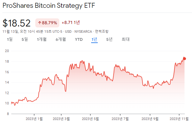 QQQ로 잘 알려진 Proshares의 대표적인 비트코인 ETF, 비트코인 선물 지수를 추종합니다.