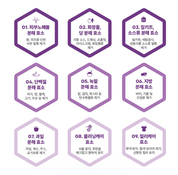 - 강력한 세척력: 9중 효소로 각종 얼룩 완벽 제거