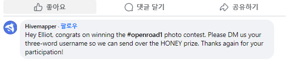 이 Open road1 포토 컨테스트에서 소소하지만 제가 우승했습니다. (한 명은 아님).