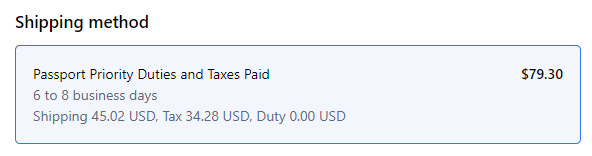 입력을 하고 나면 배송 방법 및 배송료와 관세이 계산이 됩니다.