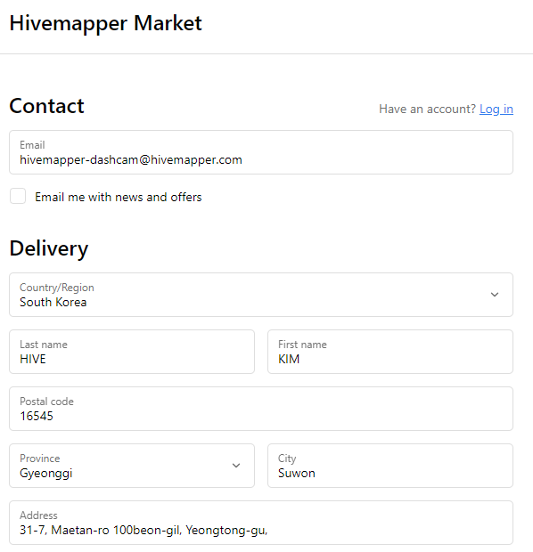 청구주소와 배송지가 동일하면 "Use shipping address as billing address"를 체크합니다.
