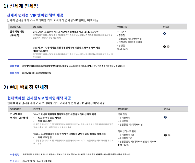 2023년 VISA 비자 프리미엄 카드 공항 관련 서비스 (발렛, 라운지, 면세점 VIP)