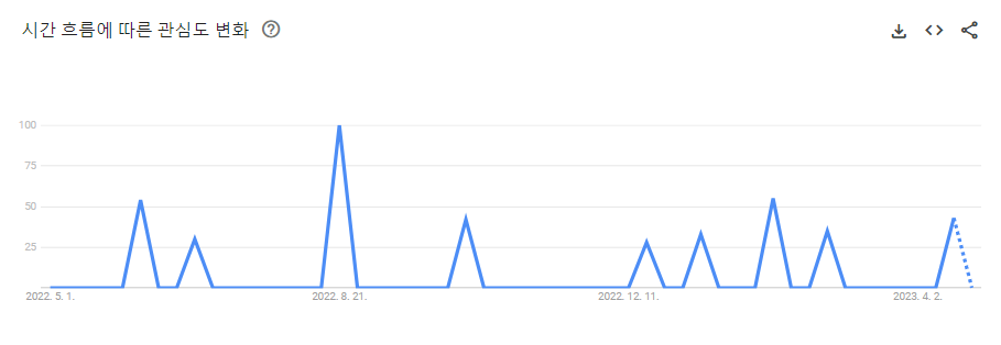 코인마켓캡 기준 555위이며 구글 트렌드에서 보이듯 사람들의 관심을 못 받고 있는 코인임을 알 수 있습니다.
