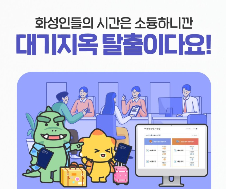 여권 발급을 위해 화성시청 민원실이나 동탄출장소를 찾아가 현장 대기를 겪던 시민들에게 기쁜 소식이 전해졌습니다. 화성시는 2023년 7월 19일부터 시민들의 현장 대기 부담을 해소하고자, 여권 발급 및 수령 대기인수와 호출번호를 화성시청 홈페이지에서 간편하게 조회할 수 있는 서비스를 도입합니다. 이로써 시민들은 불편한 대기시간을 최소화하고, 편리하게 여권 발급 서비스를 이용할 수 있게 되었습니다.