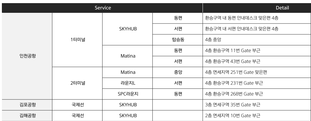 서비스 제공 매장 : 인천공항 명가의 뜰, 메이하오(T1), 푸드스탑(T2)