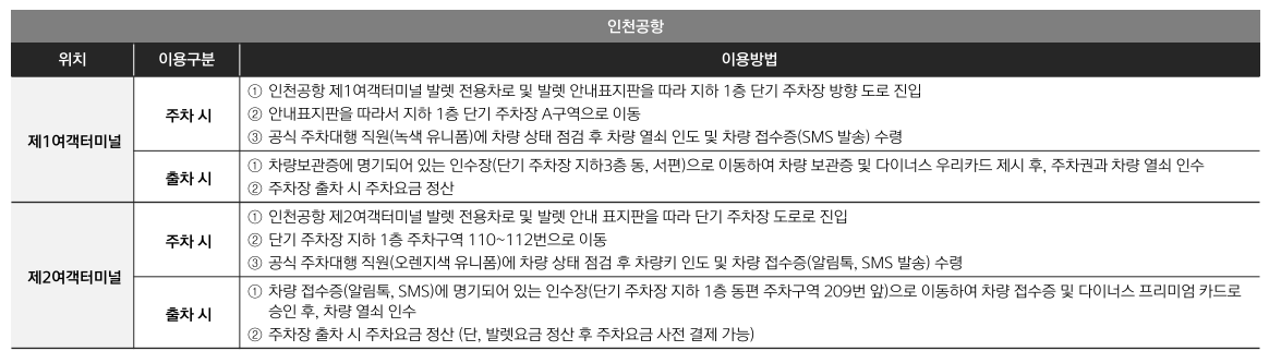 인천공항 발렛 파킹 무료 이용 혜택을 제공합니다.