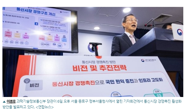 과기정통부에서 6일 발표한 통신시장 경쟁촉진 방안에 따르면 이용자의 선택권을 넓히기 위해 아래와 같이