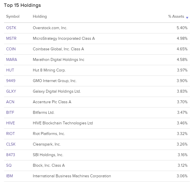 Holdings: Includes MicroStrategy and other blockchain-related stocks